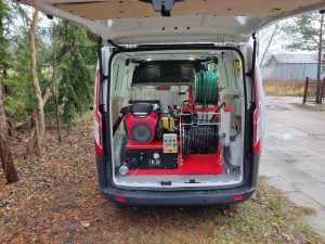 Vysokotlakové zariadenia TORNADO v tejto konfigurácii sú určené na čistenie potrubí s maximálnym priemerom 300 mm. Sú veľmi všestranné a vybavené spoľahlivými vysokotlakovými čerpadlami. Čerpadlá majú keramické piesty, vďaka čomu sú odolné voči drobným nečistotám ako je piesok často sa vyskytujúci aj v čistej vode.